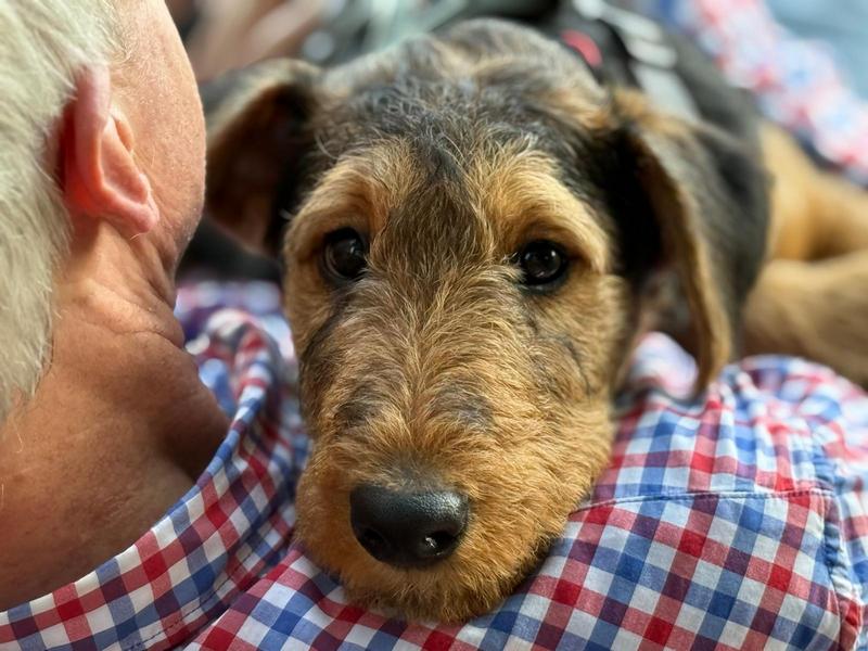 Onno ist am 8.Februar 2022 geboren. Er hat ein selbstsicheres und freundliches Wesen. Er ist sehr sozialverträglich gegenüber anderen Hunden, auch Rüden. Er lebt mit seinem Airedalekumpel Maserati bei Kirsten Brand in Hamburg und wird wie er als Rettungshund ausgebildet.
